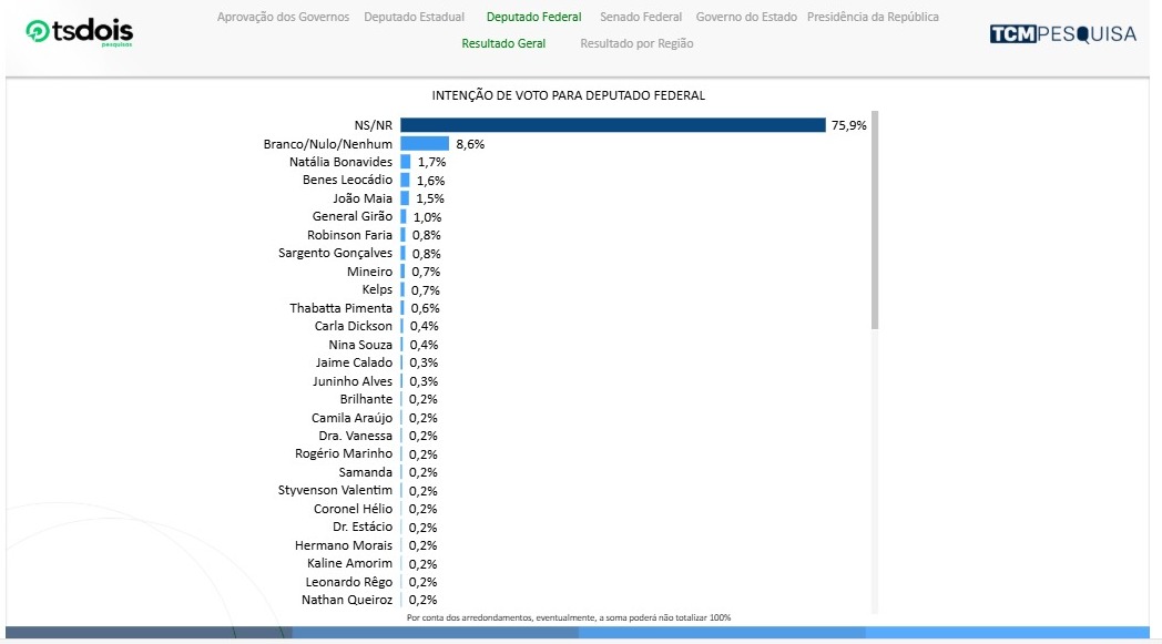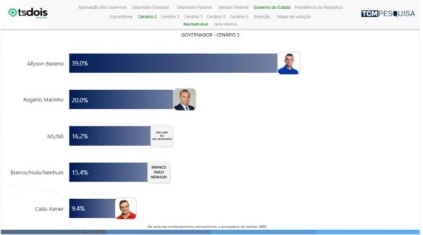A pesquisa TCM/TSDois traz, nesta quarta-feira (29), novo levantamento com a intenção de votos para o Governo do Estado do Rio Grande do Norte, considerando as eleições de 2026.