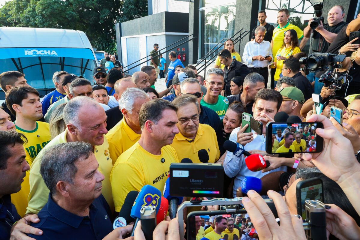 O encontro também contou com a presença do senador Flávio Bolsonaro (PL), pré-candidato à Presidência da República.
