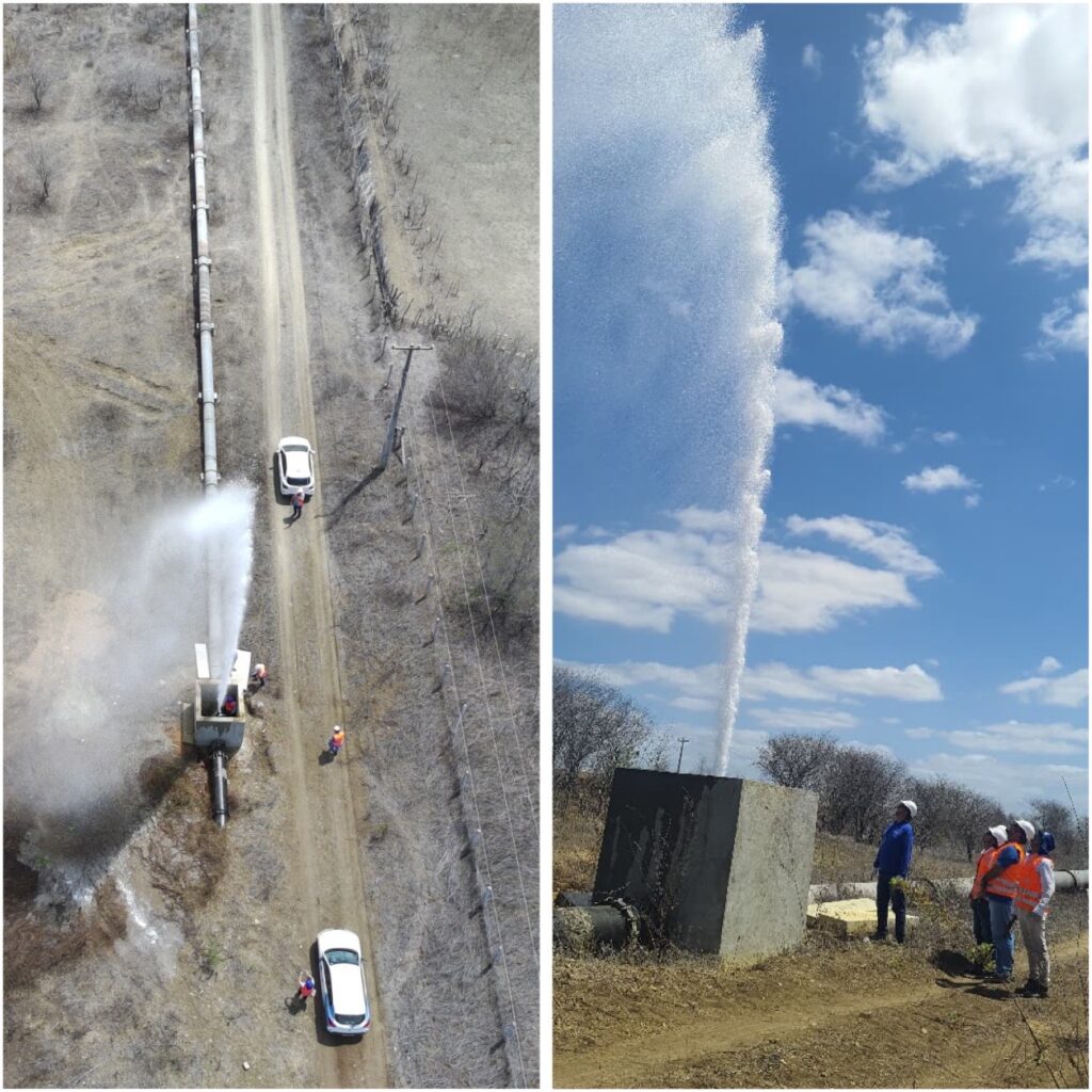 Nesta etapa, está sendo transportado apenas 25% da vazão projetada da adutora, volume suficiente para testar os 63 quilômetros de tubulação. As equipes percorrem todo o trajeto para verificar a integridade da estrutura e preparar o sistema para operar com sua capacidade máxima.
