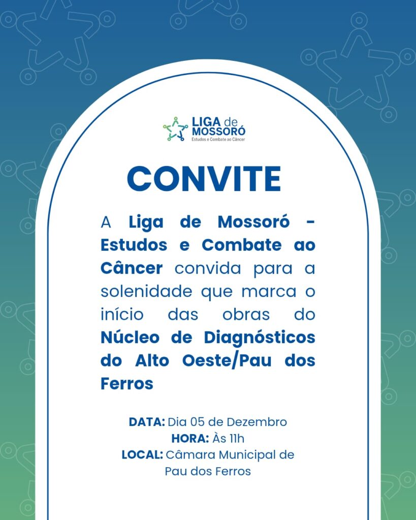 A Liga de Mossoró – Estudos e Combate ao Câncer, realiza na próxima sexta-feira (5), às 11h, na Câmara Municipal de Pau dos Ferros, solenidade que marca o início das obras do Centro de