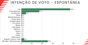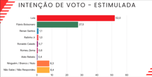 Na pesquisa Seta/Blog do Barreto/O Potiguar, divulgada nesta sexta-feira, Lula alcança 52% das intenções de voto, seguido por Flávio Bolsonaro (PL) com 27,5%.